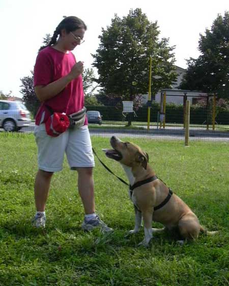 Io sono convinta che con i cani, anche e soprattutto con cani “forti” come può esserlo un amstaff, l’uso della durezza e delle punizioni fisiche sia controproducente.