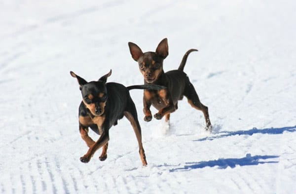 Io ho una zwergpinscher… Nel giro di poche settimane ho visto per strada 2 cagnolini che erano identici a lei come forma, ma di taglia minuscola (da adulti 1kg e 8, come era lei quando aveva 2 mesi… Ora lei pesa 5 kg).