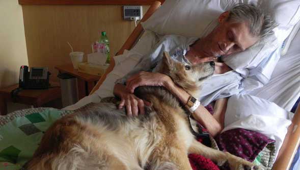 La storia è di qualche mese fa: l’ho scoperta solo oggi su Facebook. Un uomo, malato di cancro terminale, ha espresso l’ultimo desiderio di poter rivedere il suo cane: la direzione dell’ospedale glielo ha permesso e quello che si vede nella foto è il loro ultimo incontro.