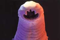 Vermi tondi che infestano l’intestino del cane attaccandosi alla parete intestinale e provocando ferite sanguinanti