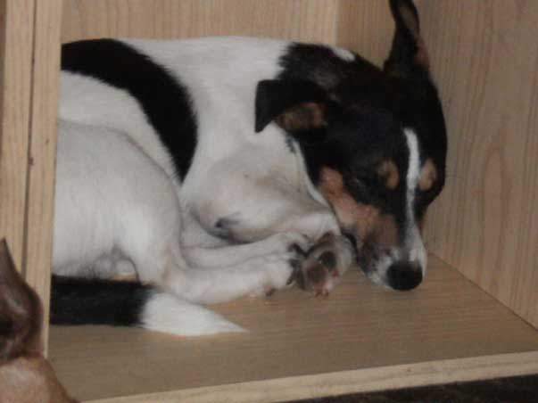 Orlando salta anche lei fuori dalla cuccia , i piccoli dormono.
