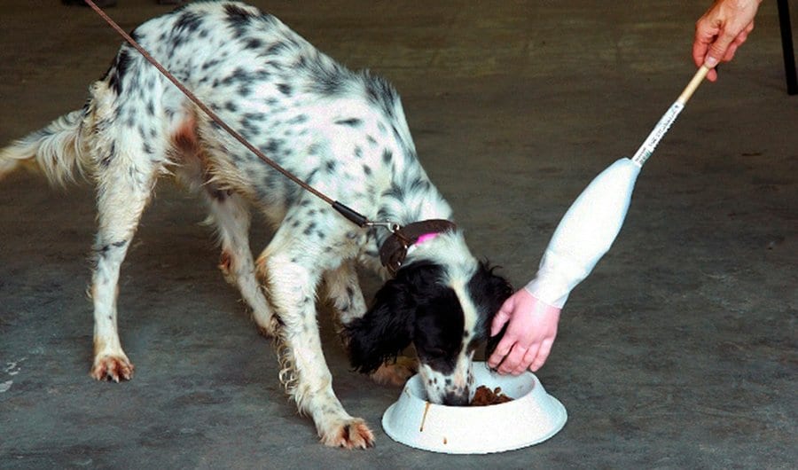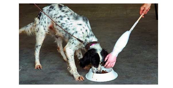 • A cosa serve la mano di plastica? A NIENTE. A cosa dovrebbe teoricamente servire, secondo gli squinternati che l’hanno inventata? A testare le reazioni del cane se lo tocchi, se gli tocchi la ciotola, se gli tocchi un giocattolo e così via. Ovviamente il cane la vede per quello che è: un bastone con attaccato un simulacro di mano senza alcun odore, senza movimenti spontanei, senza nulla di “umano”.