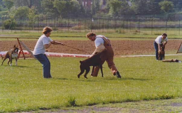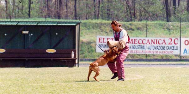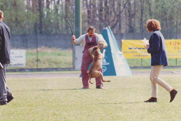 Abbiamo già detto dell’attitudine a forzare il lato di entrata nel lanciato, con il risultato tragico, se il cane non accetta questa forzatura, di gravi traumi sull’animale, per l’impossibilità da parte del figurante di scaricare un cane che entra sulla sua gamba di appoggio, avendo invece “liberato” l’altro lato.