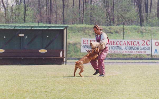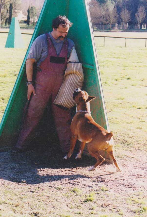 Un grande personaggio mi disse una ventina di anni fa: “vedi Carlo, non é il figurante che deve correre, che deve coprire la distanza , ma é il cane. Coprendo la distanza ha il tempo di pensare e di valutare quello che sta succedendo senza essere stimolato. Il figurante solo negli ultimi metri deve cambiare atteggiamento e sfoderare la minaccia sul cane che dovrà quindi reagire a questo cambiamento improvviso e ravvicinato di situazione!”