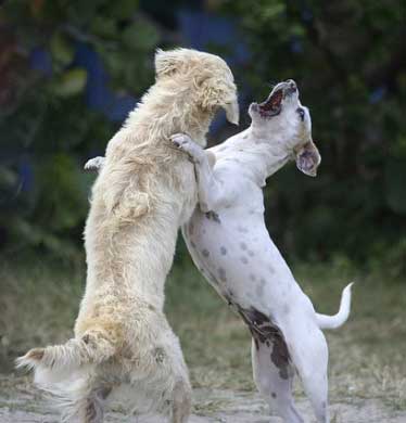 Non possiamo, insomma, metterci in competizione con il rapporto esistente tra i nostri due (o tre, o quattro) cani: non possiamo, che so, competere con loro nella corsa per fargli vedere che siamo più veloci (non lo siamo: ci semina anche un bassotto), e tantomeno buttarla sul fisico e dimostrare che siamo più forti nella lotta (non lo siamo: i cani a volte “ci lasciano vincere”, ma se decidessero di combattere seriamente, anche un cocker ci manderebbe all’ospedale… come a volte, purtroppo, succede davvero).