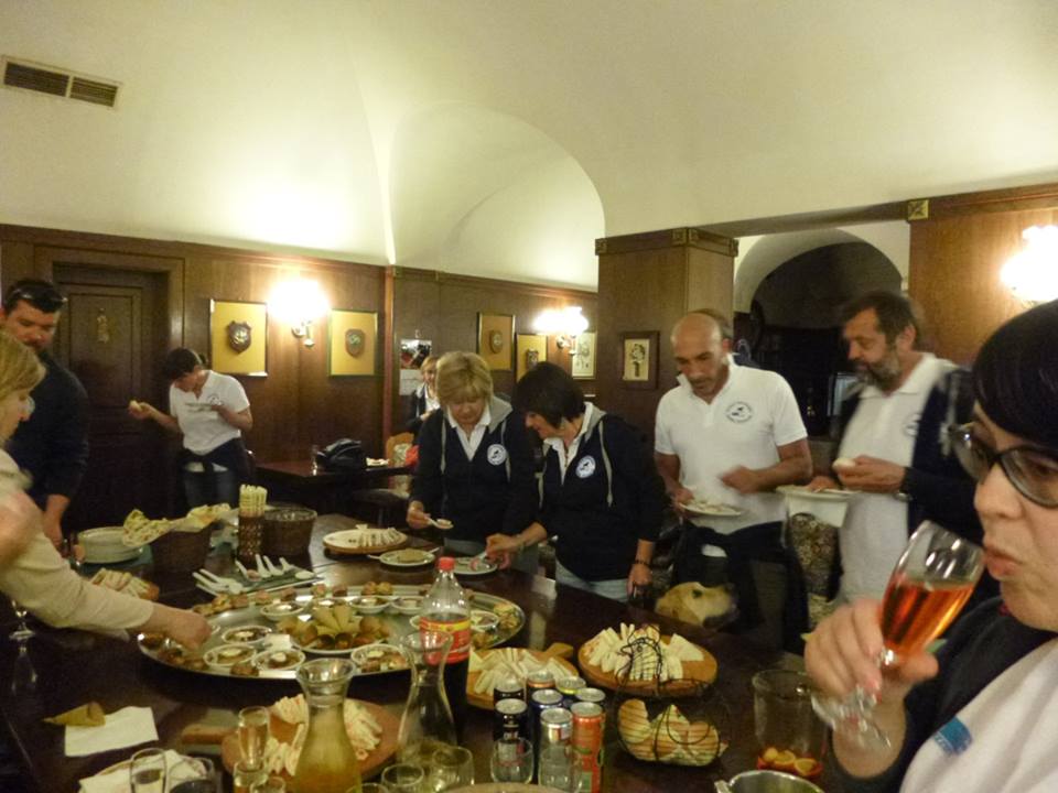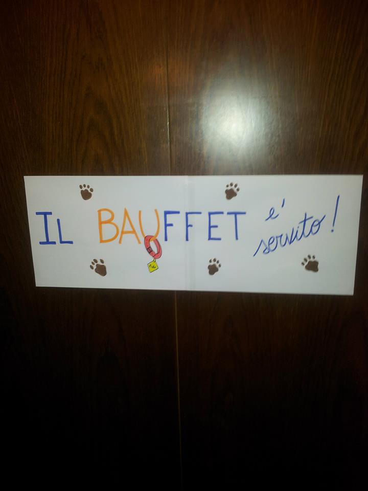 A fine “tour”, l’apericena: che uno pensa, vabbe’, ci saranno due stuzzichini, qualche piattino sfizioso e ciao. Invece era una specie di megabanchetto tutto squisito… e c’era anche il Baubuffet, o meglio ci sarebbe stato se la golden della mia cicerona, Kyma, non si fosse sbafata TUTTO, lasciando agli altri cani solo le ciotole dell’acqua.