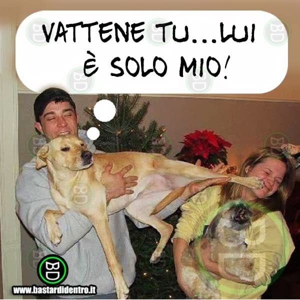 In realtà è abbastanza difficile che un cane decida di comandare proprio su “tutti” e di farsi valere su “tutti” suon di ringhi e morsi: anche perché, se ci prova, di solito finisce in canile o peggio ancora sul tavolo del vet per l’eutanasia (anche se non ha mai avuto colpa di nulla): molto più frequente il caso in cui il cane, pur avendo assunto il ruolo di capofamiglia, si limiti a diventare iperpossessivo verso uno dei suoi membri (quello che poi sentirete dire “Mi adora, vive per me, per questo vuole difendermi da tutti”: in realtà, più adorarlo, lo considera una sua proprietà…), prendendo posizione contro altri. Il caso più classico è quello dell’umana femmina con cane maschio che impedisce al fidanzato/marito di sfiorare quella che lui ritiene essere la “sua” donna. In alcuni casi (specie con i cani piccoli e bambinizzati) ci può essere addirittura una connotazione sessuale (ne abbiamo parlato in questo articolo): ma la maggior parte delle volte è proprio questione di pura e semplice possessività: questa umana è mia e tu non me la devi tocca’.