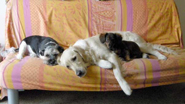 e godiamoceli sti cani… il momento più bello è al risveglio quando a turno (le mattine che non sono di fretta) mi si spalmano addosso quando ancora sono nel letto…o comunque vengono a darmi il buon giorno a fianco!