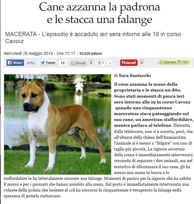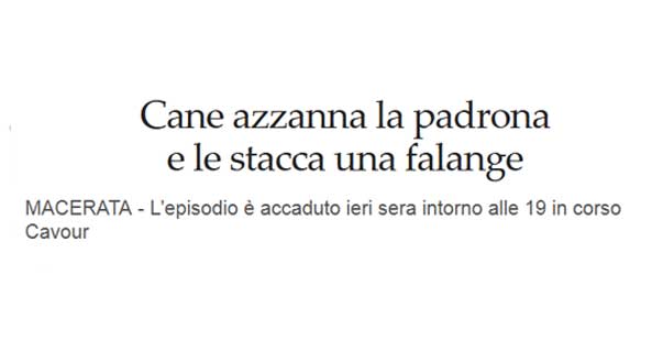 “Cane azzanna la padrona e le stacca una falange”: questo il titolo pubblicato su “Cronache maceratesi”.