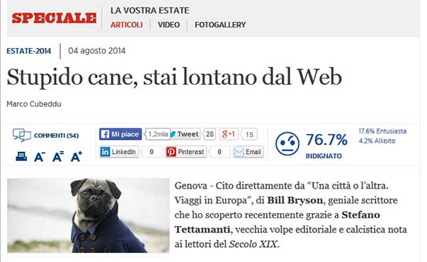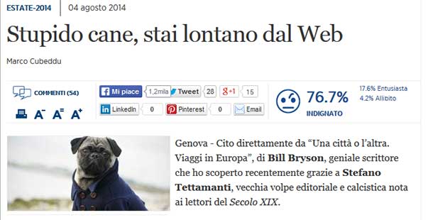 Al Cubeddu è successo quando ha scritto “Stupido cane, stai lontano dal web” (titolo piuttosto off topic, perché il web con i contenuti c’entra come i cavoli a merenda).