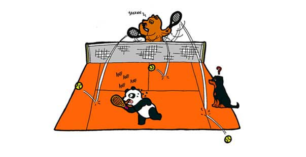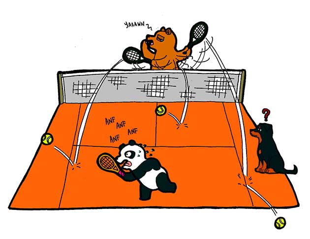 AhAhAh! Mi sembra il racconto della mia vita! Vabbè il mio orso non gioca a tennis, fa altre cose tipo andare in bici, ma la storia è la stessa! La differenza è che io, con l’orso, ci convivo da 35 lunghi anni per cui mi sono ribellata! Se vuole andare in bici si cerchi una compagnia adatta alle sue esigenze io preferisco andare nei prati con i cani e non: “vieni in bici con me e quando torniamo mentre io mi riposo tu porti fuori i cani!” E no! Io quando torno da un giro in bici con te sono stravolta e anche un po’ isterica ed avrei bisogno IO di stare in panciolle. Solo che se i cani escono con lui diventano anche loro isterici. Quindi non si discute ognuno segua i proprio hobby, ci si ritrova insieme a cena tutti rilassati!