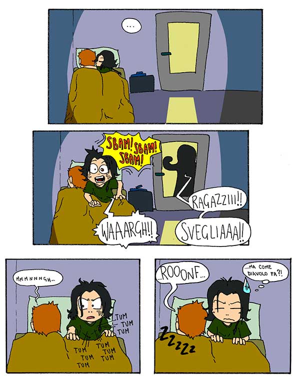 Testo e disegni di FABIANA BUONCUORE – Ed ormai son quasi due mesi… e mentre il bestione mi ronfa accanto (anche se a detta sua lui non russa) io ne approfitto per scrivere due righe. Devo dire che per ora mi trovo bene. Non fa pipì sul pavimento, non rosicchia i mobili, non morde, non abbaia. Anche se rutta. Ma non si può avere tutto dalla vita.