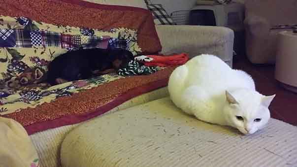 Yuma era tranquilla con tutto l’orbe terraqueo, tranne i gatti che odiava con sano gusto. Nuvola esclusa. La gattina di mia madre era l’unica a potersi permettere di prenderle il tartufo a zampate senza rischiare la morte. Ad una condizione: che IO non fossi nei paraggi. Perchè il quel caso, anche se fino ad un minuto prima avevano condiviso il cuscino, Yuma le faceva chiaramente capire il sano valore di una opportuna sparizione.