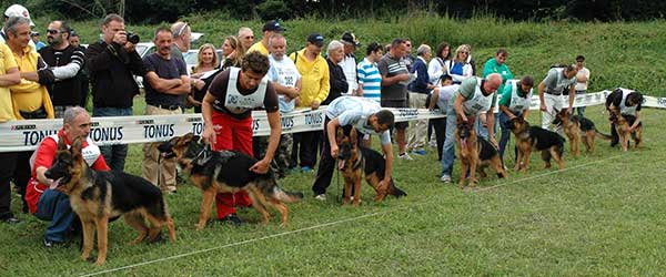 Fine anni ’70, raduno nazionale SAS: più di trecento cani iscritti. Ci sono anch’io, alle primissime armi e con uno dei miei primissimi cani. L’emozione è così forte che quasi non faccio caso al fatto che regni un silenzio davvero stupefacente, in presenza di così tanti cani: ma i pastori tedeschi sono tutti molto fissati sui loro conduttori e quasi non guardano neanche in faccia i “colleghi” a quattro zampe.