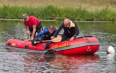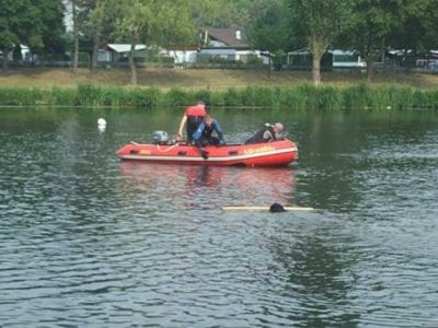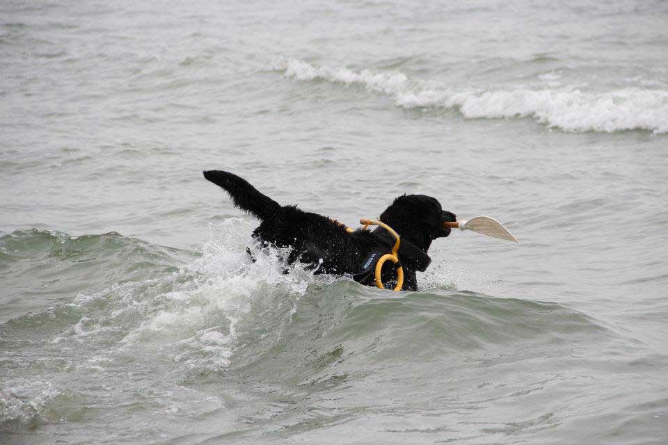 Il conduttore dà in bocca al cane un remo ed il cane, senza esitazioni deve nuotar fino al gommone ove verrà issato. Il cane deve tenere il remo fin tanto che un figurante, sporgendosi dal gommone riesca a prenderlo.