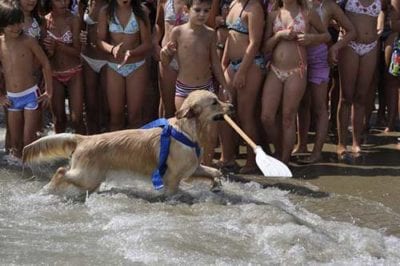 Inizialmente mando il cane su un figurante, gli chiedo di giragli intorno e tornare a riva.