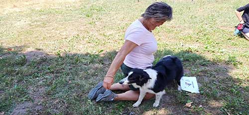 Ad ogni modo, Aladino si è divertito (e stancato) tantissimo, e così è stato per tutti i cani presenti: e anche chi magari cincischiava un po’ sui mille odori presenti al campo alla fine scopriva che la Rally Dance era più interessante e si lasciava coinvolgere nonostante il caldo (ovviamente domenica è stata la giornata più calda di tutta l’estate a Chiusa di Pesio). Ma siccome un’immagine vale più di mille parole (ma non era “un gesto”? Vabbè), anziché stare qui a rimestare la polenta vi illustro qualche “faccia felice” della giornata, qualche performance e soprattutto un percorsino fatto correttamente da Marica, casomai vi chiedeste quale sia il “modo giusto” di completare il tracciato.