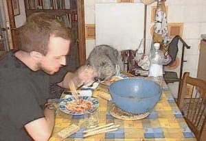 Il cane non mangia a tavola, non mette le zampe sul tavolo né il naso sulla tovaglia (le foto NON vanno imitate).