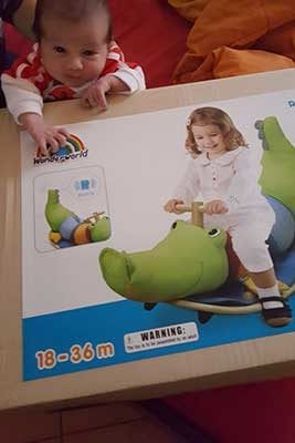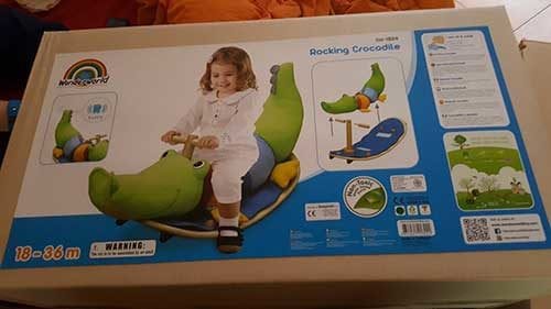 Il secondo regalo nasce invee dal fatto che nel gruppo Facebook di “Ti presento il cane” io parli dell’eventuale allontanamento dal gruppo per chi non rispetta il regolamento come “finire in pasto ai coccodrilli”. E avendo degli amici serissimi, potevano farsi mancare l’occasione per regalarci un fantastico coccodrillo a dondolo? Certo che no!