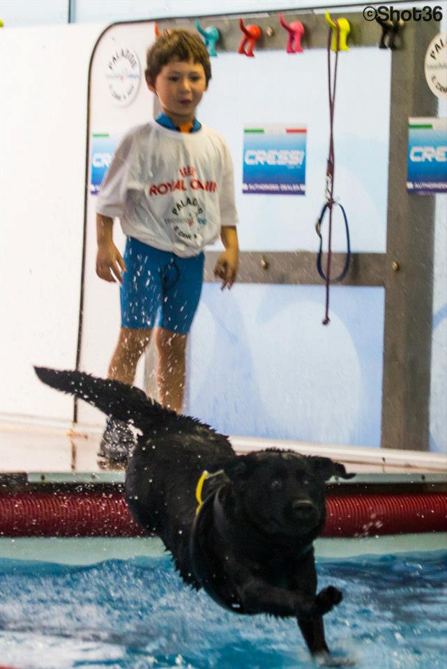 Poi è arrivato l’invito alla gara di tuffi ed allora abbiamo pensato di riprovarci. Tommaso è andato in gara con Batistuta, una labrador di 4 anni. Lui era emozionatissimo, ma è stato bravo.