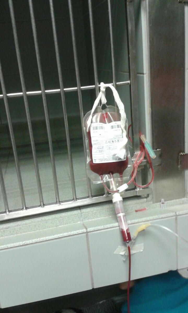 Siamo arrivati ad iscriverci alla lista donatori su richiesta di una delle veterinarie della clinica che cura i miei bestioni. Sono cani di un certo peso: Trimix sfiora i 50 kg e Baloo i 60, ma vanno bene anche cani più leggeri (per quanto cani piccini non si considerano perché potrebbero donare troppo poco sangue), devono essere in salute ed in regola con vaccini e prevenzione di filaria e leismania (qualora vivano in zone a rischio), devono essere tranquilli nell’ambiente veterinario, avere almeno 2 anni. Nella clinica che ci segue il tempo di riposo tra un prelievo e il successivo è di almeno 6 mesi. Ovviamente spesso è di più perché, sebbene abbia sentito dire che in una regione italiana (mi pare il Veneto) ci si sia organizzati istituendo una banca del sangue analoga a quella umana, nella mia regione (il Piemonte) e in quella in cui dono (la Lombardia) non vi è nulla di simile e la donazione è a chiamata, quando vi è un caso che necessita.