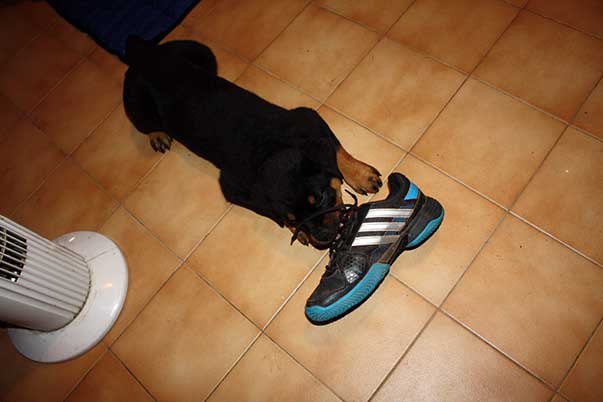 Ah, quante ciabatte il mio cane ha fatto fuori da cucciolo. E la cosa inquietante, è che riusciva ad agguantarle in qualche modo, anche quando le piazzavamo in posti alti proprio per non fargliele prendere..