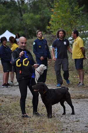 Visto il caldo esagerato che c’era, il giudice ha deciso di lavorare in questa maniera. Alle dieci della mattina tutti i cani hanno effettuato la prova a terra. Tre cani anche la prova in acqua. Alle 14, ripresa dei lavori per i sei binomi rimasti. Alle 17 iniziavano le premiazioni.
