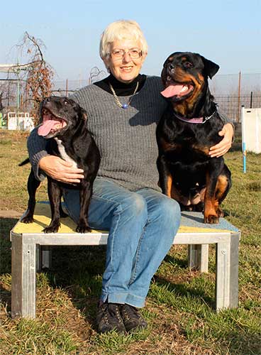 E’ arrivata da noi convivendo inizialmente in casa con Destiny e Bisturi, poi è stata inserita del “gruppo rottweiler” con Tuono e Medusa (sua mamma) e dopo un breve periodo di lavoro e adattamento (necessario più per Medusa che per Samba) potevano uscire tutti e 3 insieme abbastanza tranquillamente, ha visto arrivare negli anni diversi cuccioli di ogni tipo (Destiny, Aladino, Pasticcino, Ondina e Mandriano… se ci limitiamo ai cani!) e con tutti loro è sempre andata d’accordo: ancora negli ultimi giorni, prima che la sua salute si aggravasse improvvisamente, ha fatto qualche uscita con il gruppo dei “piccoletti” (e con contorno di polli vari, ovviamente).