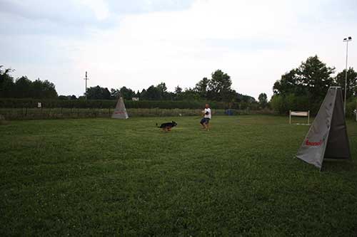 Ultima parte della festa è stata la dimostrazione di alcune attività cinofile (potevano forse mancare, in un ricordo di Valeria?): Davide Cardia ha mostrato con il malinois Yanez e con il pastore tedesco Dantes alcuni attacchi da Utilità e Difesa e una ricerca.