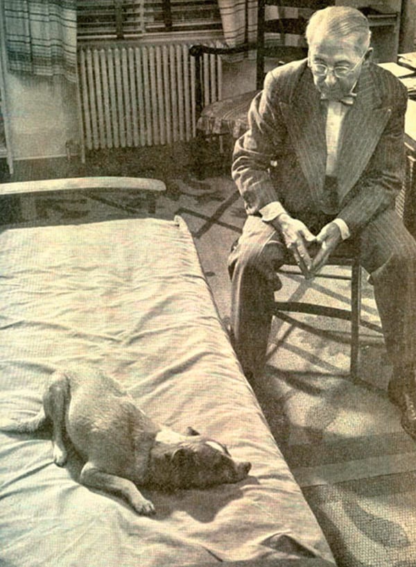 Passò molti periodi felici sdraiato ai piedi del suo nuovo padrone o sul sofà del suo studio, ascoltando la voce calma che gli diceva che era un cane buono e ben voluto, mentre una mano amichevole gli dava un buffetto sulla testa – tutto ciò che ci vuole per mettere profondamente e completamente in ordine il mondo di un cane.