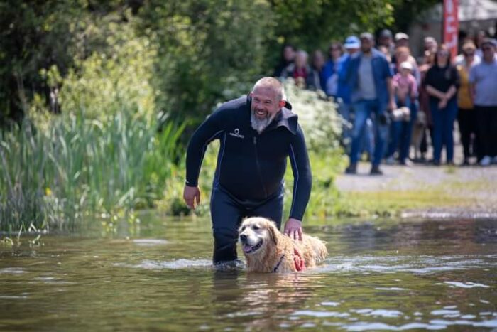 Campo in acqua un lago pieno, ma talmente pieno che la piattaforma in acqua che ne permetteva l’accesso da riva sembrava un’isoletta, per cui il giudice Denis Le Berre ha dato la facoltà ai concorrenti di partire o dalla stessa oppure dall’acqua con il cane che già nuotava.