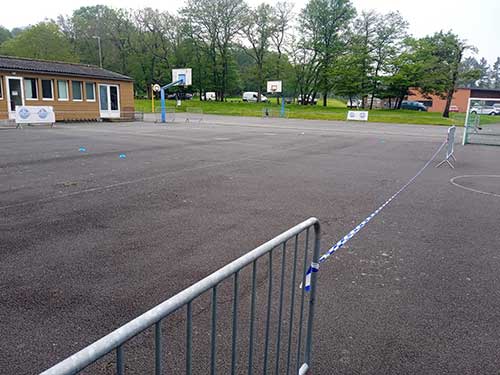 Campo a terra un piazzale in asfalto off limits già dal sabato mattina: ottima scelta.