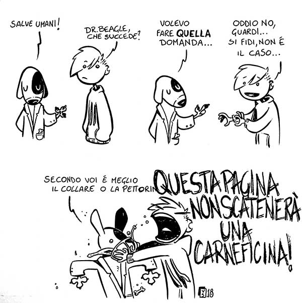 Ora, dopo millemila anni e soprattutto dopo che alla fin fine al “proprietario medio” di tutti gli scanni in questione frega il giusto (ovvero qualcosa di prossimo allo zero), non sarebbe un pelino ora di piantarla? Prendo in prestito un’illustrazione della pagina Guida galattica per dogsitter e ringrazio l’autrice per il consenso a usarla in questo articolo.