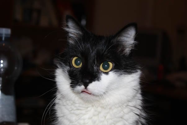 La gatta ri-salta sulla scrivania in tempo zero e stavolta non gioca neppure la carta del ruffianesimo a suon di fusa, ma mi dice direttamente: “MIAO?” (direi che qui la traduzione è superflua).