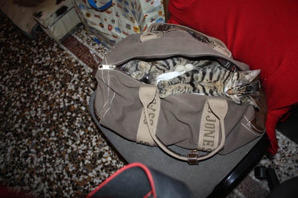 Purtroppo di questa scena non ho nessuna foto, perché se per caso appaio con la macchina fotografica in mano lei salta immediatamente giù e fa la faccina da Santa Maria Gattetti. “Porta? Io? Quale porta?”