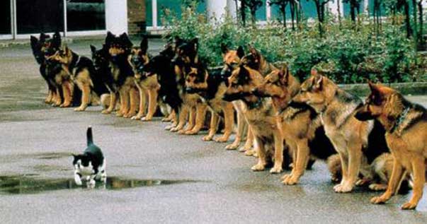La foto dei pastori tutti fermi a guardare la “sfilata” del gatto mi ha fatto sorridere… soprattutto se penso alla mia pelosa, che appena vede un gatto non si da’ tregua. E’ stata abituata a vivere con molti gatti prima che l’adottassi, a rincorrerli e ad avere con loro un rapporto di amore/odio (o direi meglio gioco più che odio!).