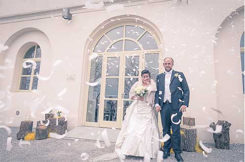 Conclusa la celebrazione e finalmente ufficialmente sposi, Davide e Fabiana sono usciti ricevendo il consueto bombardamento di chicchi di riso, a cui tutti si erano preparati. Tutti tranne uno zio, che si è presentato con in mano direttamente l’intero pacco appena acquistato da un negozio adiacente il Comune. Fortunatamente ha comunque avuto tempo di aprire la confezione…