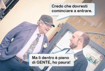 Dopo circa 10 minuti in cui ha cercato di non farsi notare, Adelchi gli ha fatto sensibilmente notare che se non si muoveva sarebbe arrivata la sposa, e quindi forse era l’ora di entrare in Comune ad attenderla, come tradizione vuole.