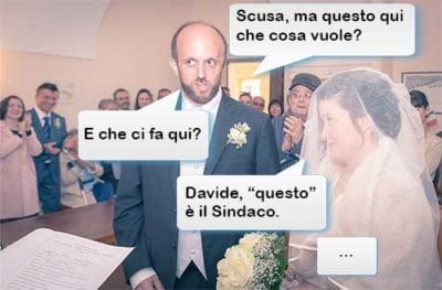 Nonostante il cospicuo numero di presenze, gli abiti eleganti, la presenza del Sindaco e tutto quanto fa spettacolo, conoscendo Davide e Fabiana effettivamente non tutti erano convinti della veridicità della cerimonia.