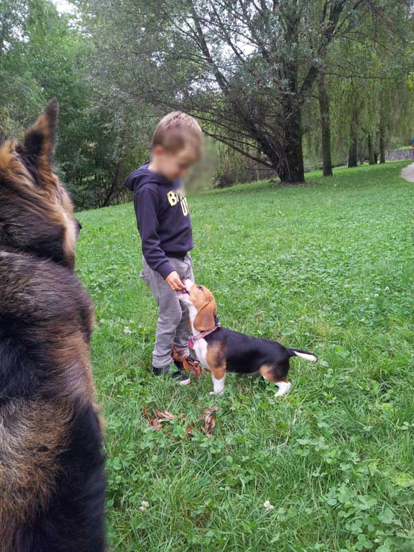 Il nostro intento è da un lato quello di creare un rapporto di complicità con il bambino, ma dall’altra di far sì che il bambino acquisisca una normalità nel rapporto: il cane deve diventare una presenza naturale in casa, che può e deve essere lasciato tranquillo, non necessariamente deve essere sempre chiamato o invitato a giocare.