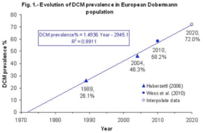 L’aspetto preoccupante è la crescita di questa patologia: secondo i dati, nel 1990 l’incidenza della cardiomiopatia dilatativa era del 25%, da allora è aumentata di circa l’1.5% all’anno e da qui il dato allarmante con cui abbiamo intitolato l’articolo: entro il 2040 il rischio è che la totalità dei dobermann sia affetta da questa patologia, portando conseguentemente all’estinzione della razza.