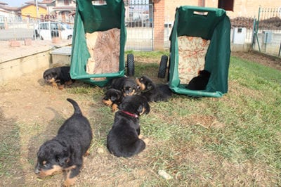 Fabiana arriva, Davide anche, insieme andiamo a prendere i cuccioli dalla loro stanza per portarli nel prato, dato che qui c’è un bel sole.