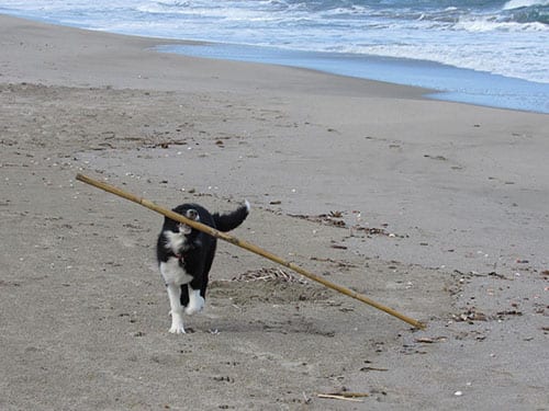 E allora cosa si fa d’inverno? Ci si approfitta delle spiagge deserte su cui, piene di bastoncini bellissimi da lanciare.