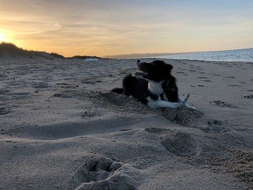 In tipico stile border, ha cominciato a correre come una pazza da una parte all’altra, approfittando della libertà da guinzaglio e andando alla scoperta di spugne, conchiglie e tutti gli odori portati dal mare!