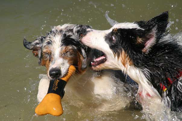 Stimolate il cucciolo alla reattività proponendovi fisicamente e non staticamente durante il gioco: gli aussies amano essere spinti e giocare usando la bocca, quindi è una buona idea proporrre loro straccetti o salamotti da addentare, fermando il gioco a comando PRIMA che il cane vada in ipereccitazione, per poi subito riproporsi in maniera invitante.