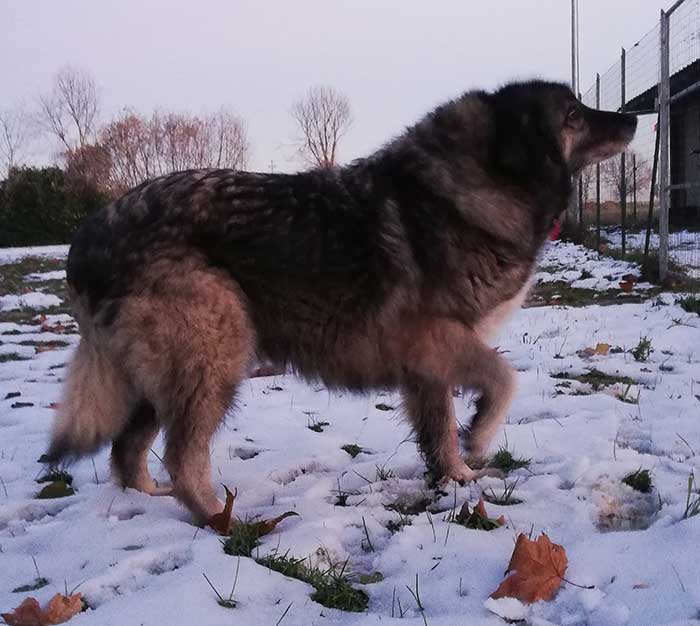 Alby è un cane di grossa taglia, con pelo lungo e folto. Sembra un orso. Quando è iniziata la nostra storia, non posso negare che le ringhiate ai primi ingressi nel suo box fossero inquietanti, soprattutto per il tono profondo e perentorio.