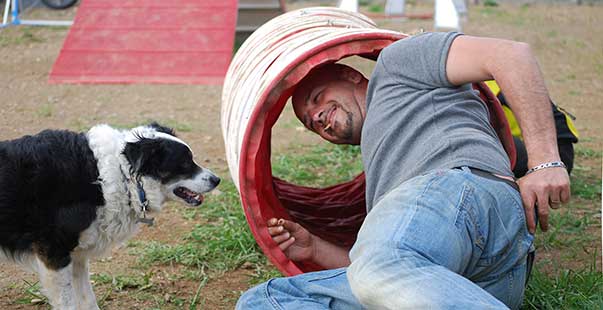 il referente manca da casa una settimana,il cane è su di giri gli fa le feste e lo slinguazza 🙂