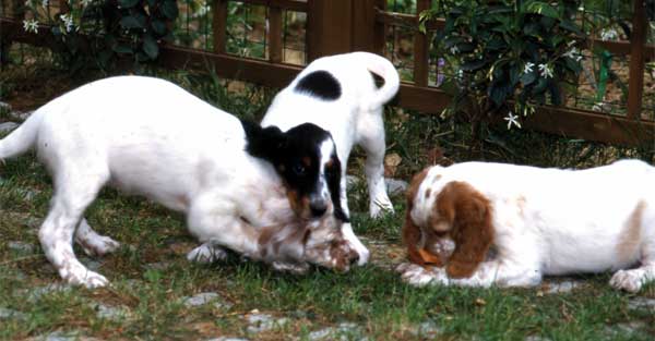 Mentre gioca, quindi, il giovane cane sperimenta tutti quei comportamenti che poi metterà in atto da adulto, in contesti assolutamente seri: montare, sottomettersi, inseguire una preda, etc.