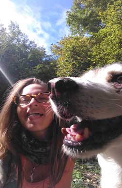 Ha dovuto imparare a farsi baciare il muso: la prima volta che ci ho provato ha spalancato le fauci prendendomi la faccia dalla fronte al mento, e solo perché è un cane maledettamente equilibrato e magnanimo non le ha richiuse trasformandomi nella cugina brutta di Voldemort. Dopo infinite volte (io DEVO baciare il musetto ai miei cani) e infiniti premietti, ha capito che non è un affronto così grave. Ringhia ancora un po’, ma sopporta.