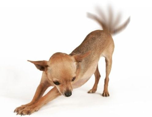 ehm… un cane che, avvicinandosi agli altri cani, si abbassa telescopicamente sulle zampe (tipo gatto cacciatore che si predispone all’agguato) e si piazza infine a terra, muso poggiato sulle zampe, in attesa che l’altro cane termini il processo di avvicinamento, che cosa gli dice? io l’ho sempre interpretato come “vedi collega cane, io sono un canino tanto ammodino, scambiamoci i cellulari” ma magari sbaglio tutto…